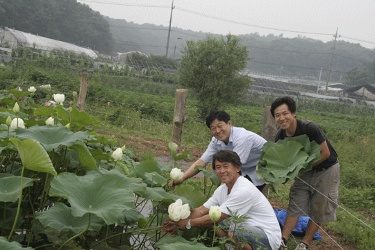 김영수 대표는 오는 8월 19일 네덜란드에서 열릴 예정인 아셈(물고기 박람회)을 준비하느라 분주한 가운데서도 뜻을 받아들여서 기꺼이 ‘연’잎을 제공해 주었다. 800여 평의 서식지에는 고고한 자태의 백련과 핑크색의 꽃잎을 자랑하는 홍련과 수련이 있었을 뿐만 아니라 ‘타알리안’이라는 수생식물이 있는 군락에는 ‘쇠물닭’이 알을 품고서 정겨움을 나타내었다.