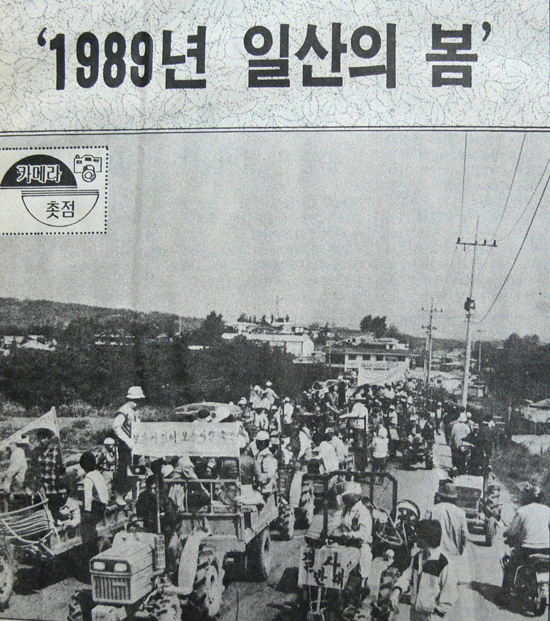 같은 해 발간된 고양신문 창간호 역시 1면 기사로 ‘1989년 일산의 봄’이란 제목으로 정부의 신도시 건설계획에 반대하며 주민들이 트랙터를 몰고 시위를 벌이는 현장사진을 내보냈다. 90년대 초반 고양시는 개발발표와 반대, 분양, 입주, 그에 따른 각종 분쟁으로 소란스럽기만 했다.