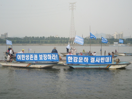 그럼에도 불구하고 한강운하 사업에 어민들의 절박함이 반영되지 않자 자신들의 생업 수단인 어선을 끌고 한강 위에서 시위를 펼쳤다. 한강은 어민들에게 삶의 터전이고 생업 전선이다. 그 위에서 어민들이 시위를 가진 것이다.