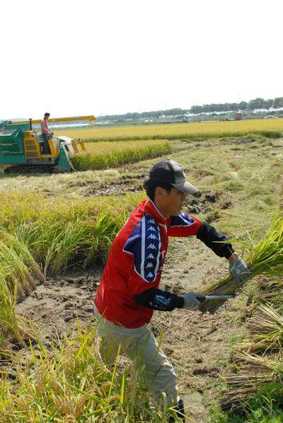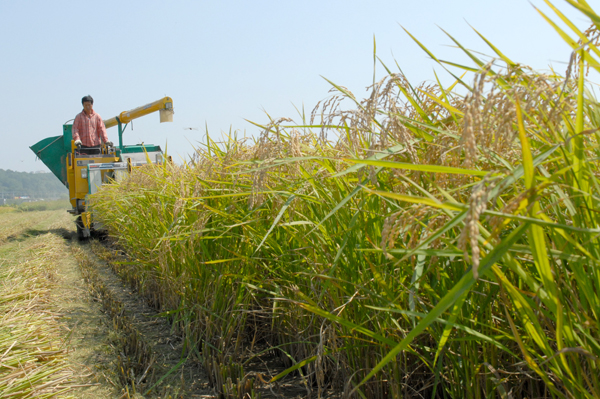 고양시 첫 벼베기가 지난 18일 지도농협(조합장 정순환) 김영달(53)조합원의 논에서 있었다. 이번 벼베기는 토당동 2만 5000여평의 논에서 4년차 유기농법으로 수확된 친환경 벼라 더욱 의미가 크다. 올해는 날씨가 좋아 작년보다 쌀농사가 풍년이다. 그러나 전국적으로 쌀 소비가 줄어들면서 쌀 재고량이 높아져 농민들은 쌀 가격 하락을 걱정하고 있다.