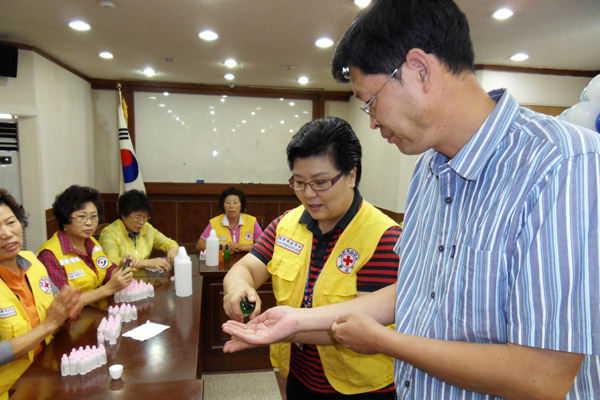 대덕동 적십자 대덕봉사대(회장 노희숙)는 신종인플루엔자 감염예방을 위한 손세정제 500여개를 직접 만들어 배포하기도 했다. 이들은 동 주민센터를 찾는 주민들을 위해 민원실에 손세정제를 비치하고 버스정류장, 마을회관, 경로당 등을 순회하며 손세정제를 신종플루 예방 홍보문과 함께 나눠줬다.