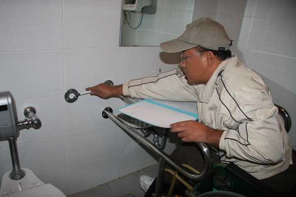 그러나 내부에 사람이 있을 경우 외부에 이를 알리는 경고등이 켜지지 않았으며 장애인들의 화장실 이용을 위한 안전봉이 파손돼 이용의 불편을 초래했다. 모니터링에 참가한 장애인들은 조사표에 이같은 내용을 꼼꼼하게 기록해 나갔다.