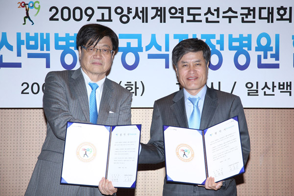 일산백병원이 2009 고양세계역도선수권대회의 건강하고 성공적인 개최를 위해 고양시와 의료 협조체제 구축을 약속했다.