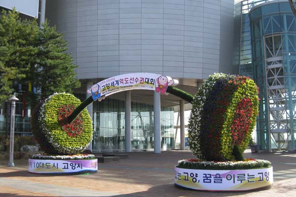 고양시 일산서구(구청장 박성복)는 ‘2009 고양세계역도선수권대회’의 성공적 개최를 기원하며 꽃 조형물을 설치했다.