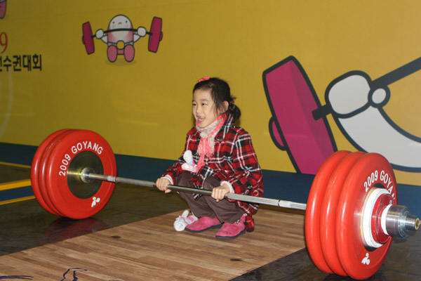 아이들은 모형 역기를 들면서 기념 사진을 찍으며 웃음꽃을 피웠다. 가족과 함께 경기장을 찾은 김진호씨는 “무거운 역기를 들어올리는 선수들의 모습이 대단해 보였다. 장미란 선수의 경기 때도 꼭 올 것이다”라고 말했다.
