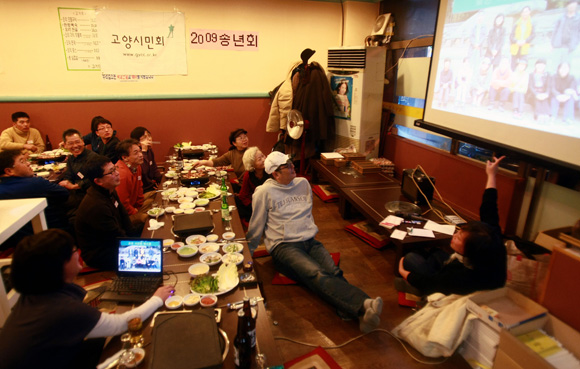 고양시민회 2009 송년회가 지난 18일 고양시청 앞 한 음식점에서 약 30여명의 회원이 참석한 가운데 열렸다. 2009년 한 해 활동을 정리·보고하는 슬라이드 영상 상영으로 시작한 송년회는 집행부 및 내빈 소개를 거쳐 회원들의 지난 1년 활동에 대한 소회를 밝히는 순으로 진행됐다.