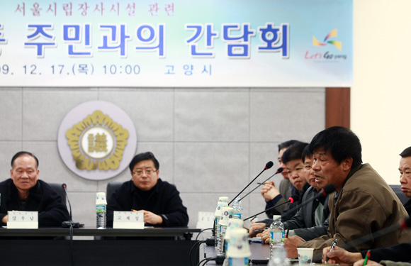 주민대표로 나선 정순우 통장은 “화장장이 들어오면서 지역 상가가 다 죽어 피해가 상당히 크다. 지역발전을 위해 상가를 옮기는 등의 대책이 필요하지 않겠냐”며 시의 대책을 요구했고 이성진 통장은 “고양시와 서울시가 해결책을 마련하지 못한다면 중앙정부에 중재를 건의해서 해결하도록 해야하는 것 아니냐. 개발제한구역을 해제해서라도 지역개발에 나서야 한다”고 주장했다. 또, 김금복 통장은 “서울시가 원지동 화장장 착공에 들어가면 벽제승화원 문제는 관심 밖일 것”이라며 “차라리 고양시와 경기도의 문제로 받아들이고 정부기관 및 시 유관기관, 기업 등을 화장장 근처로 유치해 법인세 인하 등의 프리미엄을 갖도록 해야 한다”며 시의 발상의 전환을 요구했다.