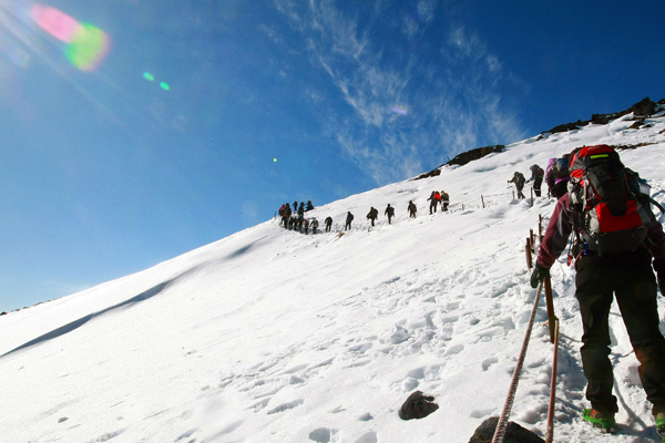 정상을 향해 한걸음 한걸음 내딛는다. 배낭을 움켜잡고 살을 에는듯한 칼바람에 맞서 오르다보니 숨이 턱 밑까지 차오른다. 기축년 한 해 우리 스스로 정한 목표에 다가서기 위해 쉼없이 달려온 삶은 꼭 산 정상을 햐한 등산객의 발걸음과 사뭇 닮아있다. 일 년 중 열흘도 보기 힘들단든 한라상 정상의 맑고 화창한 날씨는 밝아오는 경인년 새해의 희망을 다짐하는 듯 하다.