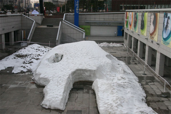 작년 크리스마스 시즌 고양 아람누리 해받이터 광장에서 개최했던‘고양 스노우잼 2009’행사의 뒤처리에 문제점을 노출하고 있다. 해받이터 광장의 대형 호랑이 형상의 눈조각품이 행사 후 3개월이 지난 지금에도 처리되지 못한채 상당부분 남아있어 아람누리를 방문하는 사람들의 눈살을 찌푸리게 하고 있다.