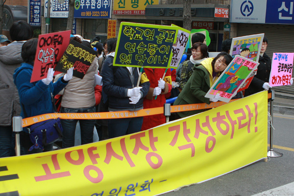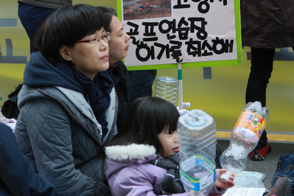 시위에 참석한 학부모 조은경씨는 “골프치는 소리가 귀에 들리는 것 같다. 아이들이 학교에서 바라보는 풍경이 골프연습장 건물이라는 것, 그리고 어느 순간 골프공이 날아올지 모른다는 그 걱정을 떨칠 수 없다”며 “고양시장이 이렇게 큰 안건을 쉽게 결정했다는게 정말 고양시민 한사람으로서 분개하고 섭섭하다”고 말했다.
