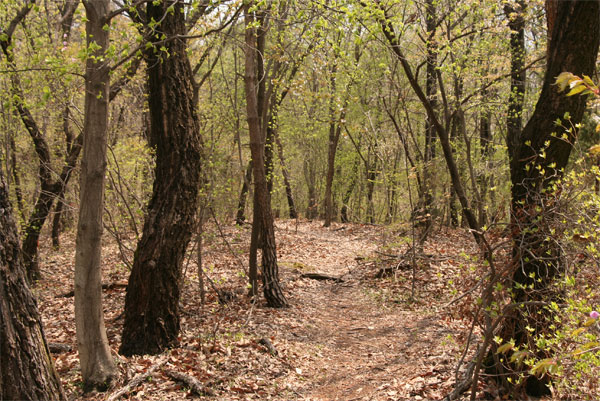 걷기 시작은 교통이 좋은 통일로 필리핀 참전비에서 시작한다. 참전비 옆 통일갈비 입구에서 오른쪽 언덕으로 올라보자. 처음은 매우 가파르지만 조금만 오르면 넓고 편편한 길이 나온다. 이곳은 길도 넓고, 숲도 울창한데도 지나는 이가 거의 없어 아주 호젓하다. 숲에는 진달래와 벚꽃뿐만 만발하고, 고개를 숙여 바닥을 보면 문득 거짓말처럼 보랏빛 붓꽃이 피어있다.