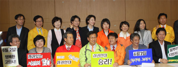 그동안 연합후보 선정에 고심을 거듭하던 고양시 5개(민주당, 진보신당, 민주노동당, 국민참여당, 창조한국당) 야당 정당협의체는 5일 공식기자회견을 통해 범야권 연합후보를 확정, 발표했다. 이번에 발표된 연합후보는 고양무지개연대(공동대표 김만흠, 김인숙)가 중재조정자로 나선 가운데 고양시 5개 야당 정당협의체가 공식기자회견 전날인 4일 저녁 7시에부터 자정에 가까운 시간까지 고심 끝에 극적으로 도출한 결과다.