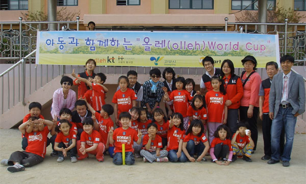 고양시에서는 13일 월드컵 시즌을 맞이하여 위 스타트 저소득 가정 아동 35명과 축구를 통한 희망 메시지를 심어주기 위해 KT IT 서포터즈 경기 북부팀 직원들의 지원과 진행으로 성사초등학교 운동장에서 레크레이션과 축구게임인 ‘올레(olleh)월드컵’을 개최했다.