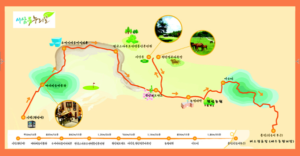 서삼릉 누리길(8.28km)은 소요시간 2시간15분으로 경로는 원당역-배다리술박물관-수역이마을 먹거리촌-서삼릉, 경마연수원-농협대학-삼송역부근(세수동마을)이다.