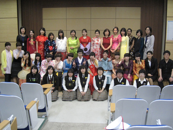 10개국의 전통의상을 학생과 다문화가족이 함께 입고, 모델처럼 걷는 모습과 자세를 맞춰보는 동안 다문화가족이 선배처럼 따뜻하게 가르쳐 주는 모습이 감동의 물결이었다. 관람하는 성사고등학교 학생들은 각 나라마다의 모델들을 보면서 환호성을 지르고, 뜨거운 박수를 보내주었다. 3개국(베트남, 필리핀, 중국)의 다문화체험으로는 베트남 모자 논라, 필리핀 신발 박야, 중국 글자를 다문화강사의 설명을 듣고 만들어 보는 시간을 가졌다.