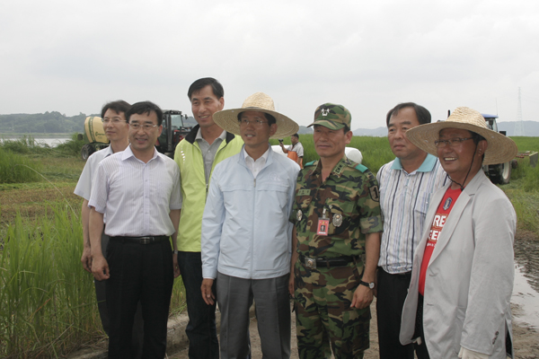 축산 농가에 신선한 야생풀이 공급되는 이곳은 2008년 10월 23일에서 24일까지 일산 킨텍스에서 ‘람사르 총회 기념, DMZ 보전을 위한 국제 컨퍼런스’의 일환으로 DMZ생태탐방이 이루어졌던 곳이다. 여기는 재두루미와 독수리의 월동지이고 광활한 초지가 형성된 장단반도는 천혜의 자연환경이 조성된 곳이다. 김 도지사는 “올해 상반기에 구제역 발생으로 힘든 시기였는데 민?관?군의 협력으로 야생풀을 사료로 한 것은 축산농가에 웃음꽃을 피우는 일로써 큰 용기를 북돋아 주는 매우 뜻 깊은 사업”이라고 하였고, 신 사단장은 “민통선의 야생풀을 그대로 두면 작전에 지장을 주는데, 풀 사료로 활용되어 축산농가에 생산비를 절감하는데 도움 되어 뿌듯한 기쁨이다”고 했다.