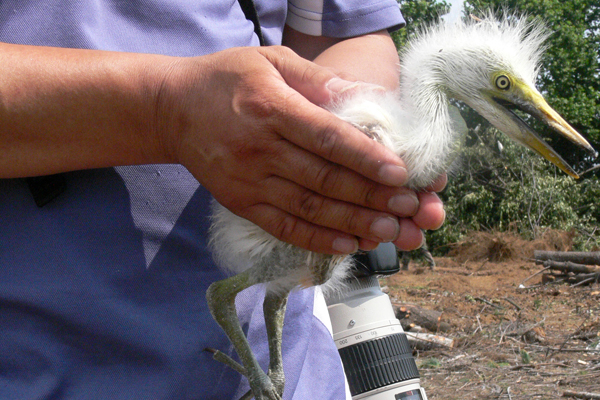 ▲ 다친 어린 백로가 아픔을 호소하고 있다.