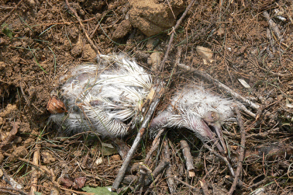 ▲ 이 날 태어난 지 얼마 안된 많은 어린 백로들이 죽거나 다쳤다.