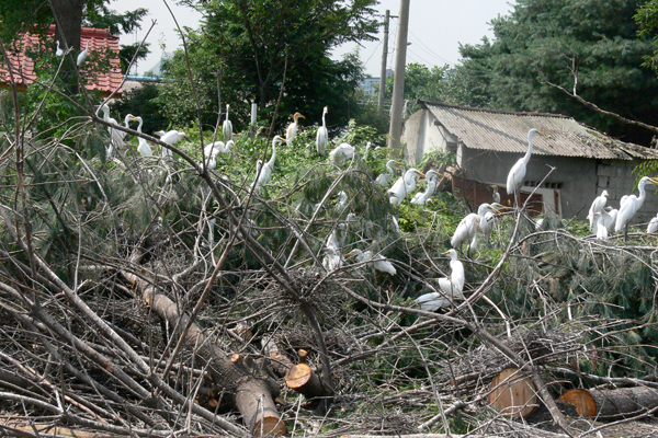 ▲ 백로와 해오라기 등의 서식지가 벌목으로 인해 순식간에 사라져버렸다.