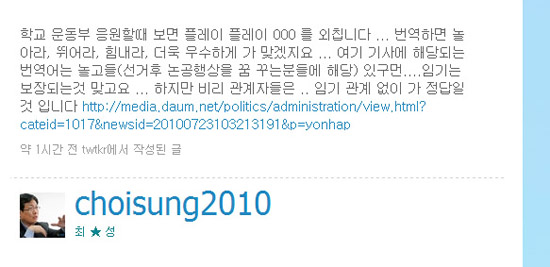 지난 지방선거 당시에 트위터는 소통의 도구로 톡톡한 역할을 했다. 후보들은 앞다투어 트위터 계정을 만들어 자신을 홍보했고, 시민들은 자신의 목소리를 얼굴 들이밀지 않고 낼 수 있었다. 선거 당일에는 특정후보 홍보대신 선거참여를 독려하는 글로 젊은이들을 투표장으로 이끌어낸 ‘공’을 인정받기도 했다.