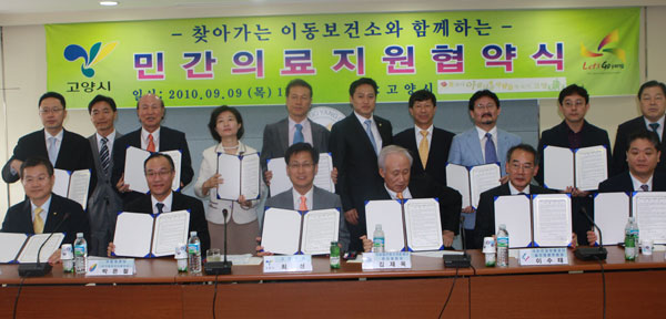 고양시가 민생안정 100일 정책의 일환으로 실시하고 있는‘찾아가는 이동보건소’사업에 고양시에 있는 의료기관이 협력하기로 했다. 지난 9일 시청 상황실에서 고양시 11개 민간 의료기관과 ‘찾아가는 이동보건소' 사업을 위한 공동협력 양해각서를 체결했다.