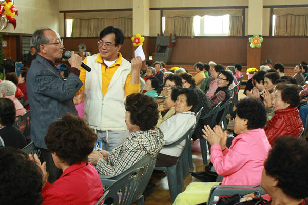 사회는 고양시 출신 개그맨 정명재씨가 맡아 시종일관 재치 넘치는 입담을 자랑했다. 초대가수 이혜미씨의 공연을 비롯해 장구춤, 경기민요, 댄스 스포츠 등 다양한 공연이 치러지는 가운데 축제를 보러 온 어르신들이 직접 마이크를 잡고 ‘창부타령’, ‘용두산 엘레지’ 등의 노래 솜씨를 뽐내기도 했다. 축제 중간에는 추첨을 통해 상품을 전달하는 자리를 가져 행사를 마친 후 어르신들은 풍성한 몸과 마음으로 귀가할 수 있었다.