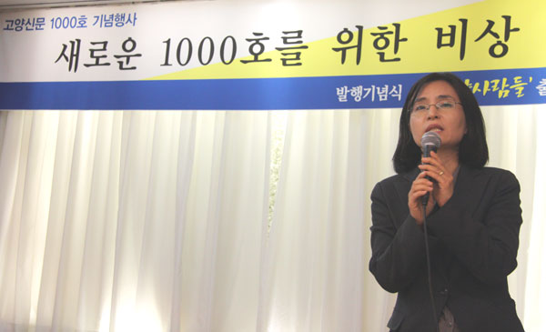 고양신문이 걸어온 21년을 담은 영상을 소개된 이후 이영아 현 발행인은 기념인사에서“수도권 지역주간신문으로서는 최초로, 전국으로서는 홍성신문에 이어 두 번째로 1000호를 발간하게 되었다”며 “지금까지 고양신문이 생존에 목말라했다면 2000호가 발간될 즈음에는 생존이 아니라 독자들에게 더 베풀 수 있는 신문으로 거듭나기 위해 노력하겠다”고 말했다.