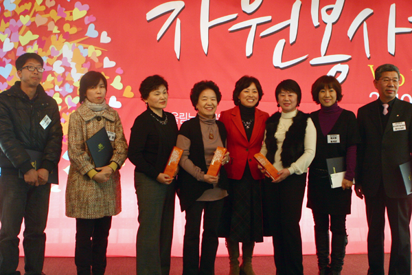 지난 1년 동안의 자원봉사활동을 평가하고 가장 활발한 활동을 펼친 자원봉사자들에게 상장과 선물을 전달하는 특별한 시간. 48명의 개인 자원봉사자들과 14개의 단체가 무대에 올랐다. 수상자들은 하나같이 맑고 화사한 얼굴로 작은 상장을 품에 안았고 여기저기서 박수와 꽃다발이 밀려들었다.