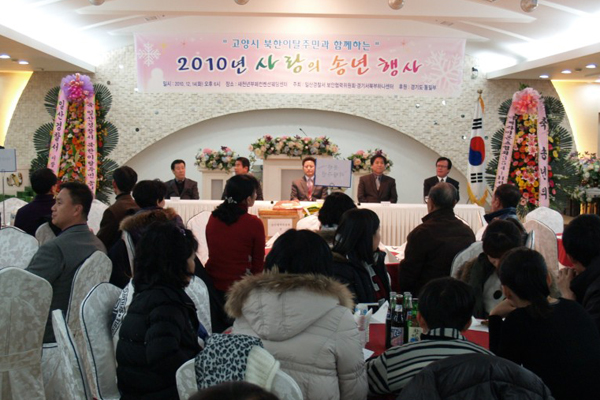 원회(위원장 송영훈)와 함께 일산구에 거주하는 북한이탈주민 90명이 참석한 가운데 백석동 새천년 뷔페에서 송년의 밤 행사를 개최하고 쌀, 생활용품 등 500만원 상당의 선물을 전달했다. 이날 행사는 북한이탈주민들의 정착을 돕기 위한 소중한 만남의 시간이었다.
