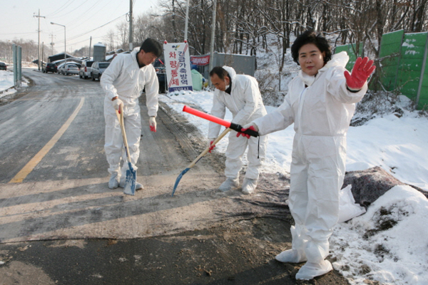 구제역이 전국적으로 확산되면서 축산농가의 피해가 점차 늘어나고 있는 상황에 이르자 고양시의회(의장 김필례)에서는 30명의 시의원 모두가 이동 통제소 방역근무를 자청하고 나섰다.