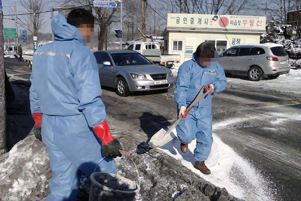 전국적으로 구제역이 급속히 확산되고 있으나 방역 인력이 부족하여 축산농가들의 시름이 깊어지는 가운데, 법무부 고양보호관찰소가 지난달 29일부터 파주시 교하읍, 광탄면 일대의 구제역 방역작업에 사회봉사자들을 투입하고 있다. <사진>