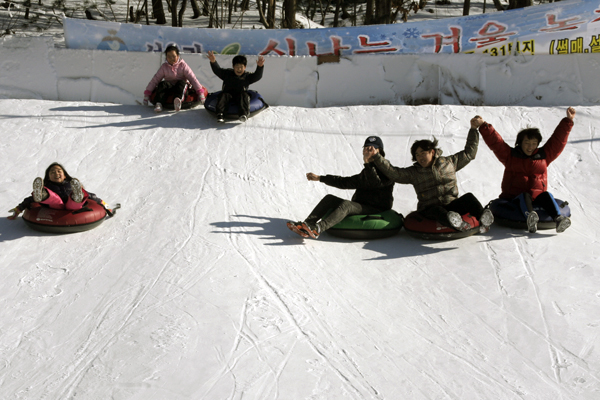 연이어 혹한 수준의 추위가 계속 되자 오고 가는 이들의 어깨가 잔뜩 움츠려들었다. 춥다고 난방 잘된 집에만 있다면 아이들이 아니다. 선유동 눈썰매장을 찾은 신해철(5세)네 가족과 이승로(고양일고 2학년)군, 신하연(고양초 3학년)양 등 은 “얼음 썰매를 탔는데 스키보다 더 재미있어서 시간 가는 줄 모르겠다”며 환호성을 질렀다.