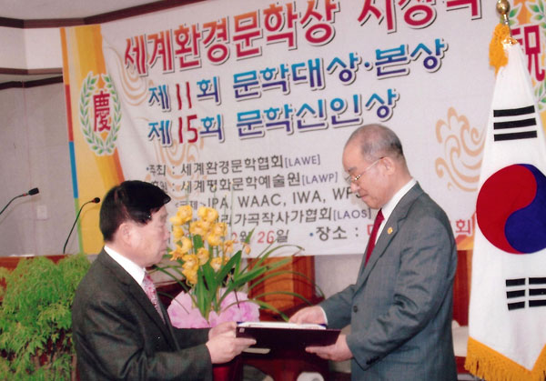 고양에서 활동하고 있는 최종복(76) 시인이 세계환경문학 본상을 수상했다. 세계환경문학협회(총재 선우호 박사)는 날로 심화되고 있는 지구촌의 환경오염과 실종된 양심의 회복을 위해 문학활동을 통해 솔선수범하는 것을 목적으로 세워진 민간협회로서 매년 환경문제를 다룬 문학작품을 선정해 세계환경문학상을 수여해왔다.