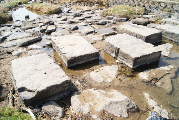 돌다리 위와 아래, 폭이 30m 가량의 강 밑바닥에는 크고 작은 수백 개의 기초 박석(薄石)을 깔아서 강물의 흐름을 조절하였으며, 폭우나 홍수에도 유실 없이 잘 보존되도록 하였다. 큰 강돌을 이용하여 빈틈없이 깔려있는 박석은 서로 엇갈리게 쐐기를 박는 형식을 취함으로서 오랜 세월에도 변함이 없게 시공하였다. 돌다리 상단부에 있는 기초 박석은 비교적 평평하게 깔려있고, 돌다리 하단부부터는 각도를 점점 낮추어 물의 흐름을 원활히 하는 공법으로 시공되었다.