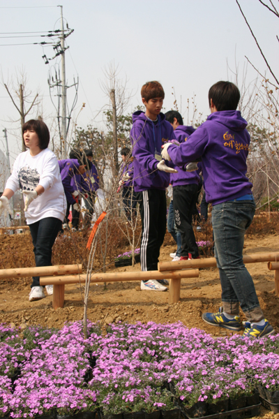 지난달부터 무궁화동산에 무궁화를 심어온 애플청소년단원들은 이날 꽃잔디를 심고, 주변을 가꾸는 일을 했다. 애플청소년단 부모들은 새터민 어르신들을 위한 식사준비에 나서 배다골이 온통 아름다운 나눔으로 북적거렸다.