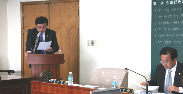 20일 기획행정위원회에 소영환 의원(민주당)이 26명 의원들의 서명을 받아 상정한 ‘고양시 주민참여 조례안’논의는 어느 때보다 치열했다. 이상운 의원(한나라당)은 ‘주민참여와 자치를 활성화하겠다’는 취지의 주민참여 조례안이 시의회의 위상을 침해하는 것이 아니냐며 소영환 의원을 집중 추궁했다. 이 의원은 “조례안이 통과되기도 전에 이미 고양시정운영위원회가 비공식 조직으로 28회나 개최됐다. 현 시정운영위에는 지난 선거 당시 야5당 정당협의회, 무지개연대 사람들이 대거 참여하고 있는 것으로 안다”며 “결국 참여할 위원들을 다 정해놓은 게 아니냐”고 따졌다.