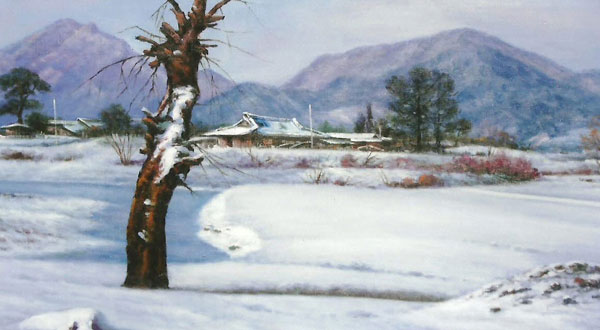 겨울 나그네 하얀 눈 위를 가고 있다.
