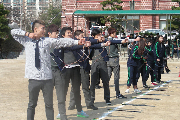 지난달 19일에 경기영상과학고등학교에서 1,3학년 약 200여 명을 대상으로 궁도강습회가 열렸다.