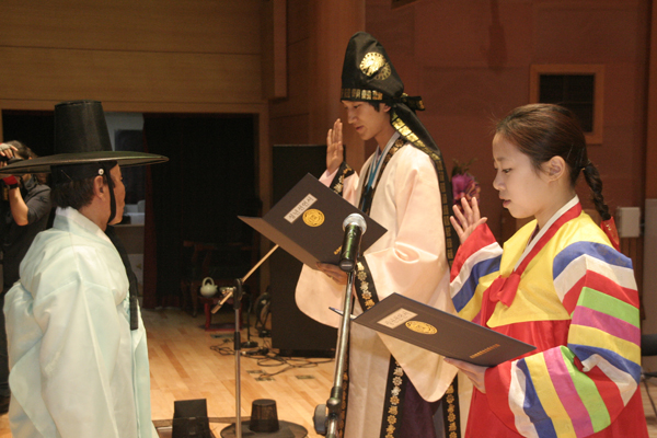 일산동구청 대강당에서 열린 전통 성년행사에는 고양문화원 한학수 원장 부부가 주례와 계자빈을 맡았다.