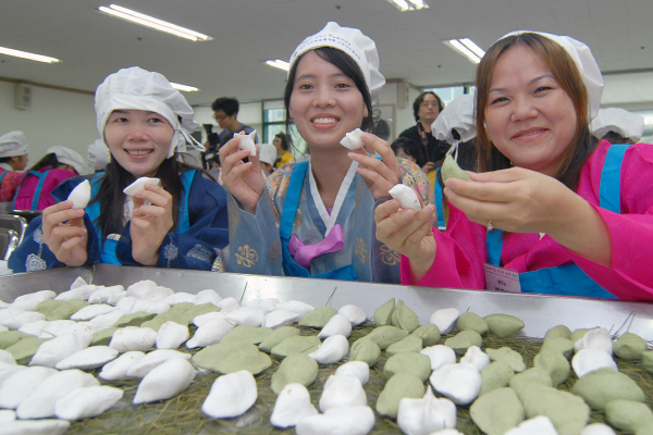 추석을 며칠 앞둔 지난 8일 대한적십자사 경기도지사 서북봉사관 강당에서 외국인 새댁들이 참여한 가운데 ‘다문화가정 한가위 사랑의 송편빚기’ 체험행사가 열렸다. 이날 행사에는 결혼 이주여성 50명이 참여했다.