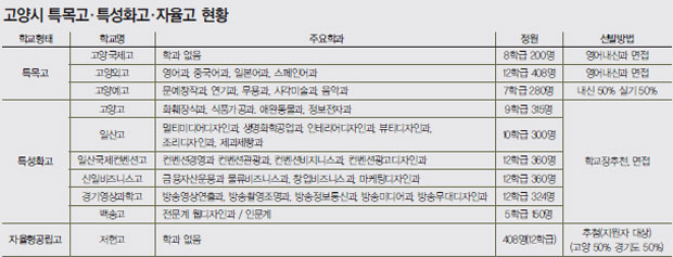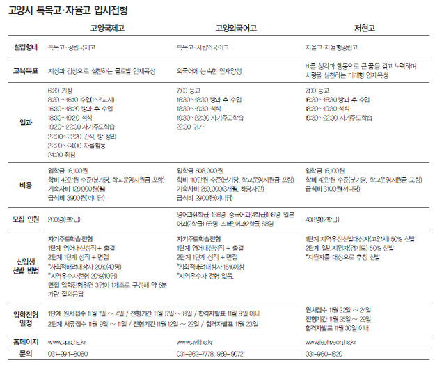 고양시 특목고‧특성화고‧자율고 총 정보Ⅰ- 특목고, 자율고 편