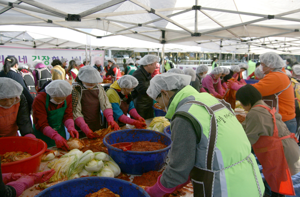 고양시 및 지역의 유관 기관인 대합적십자 주엽봉사회, 주엽2동 새마을부녀회, 송포?송산동 부녀회, 한국예탁결제원, 한라건설, 해피일산 등 봉사팀 55명과 지역주민 10여명이 한마음 한뜻으로 김치를 담근 이번 행사는 지역주민 총 850세대에게 전달되었다.