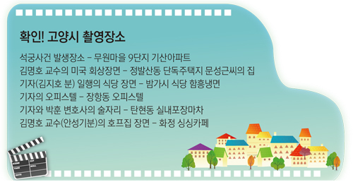 고양시가 등장하는 다른장면에는 김명호 교수(안성기분)의 미국 자택이 있다. 이 집은 장항동 단독 주택 단지의 문성근씨 집이라고 한다. 집을 선뜻 내줄 만큼 문성근씨가 이 영화에 대해 가지는 애정이 엿보인다.