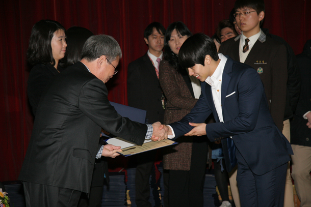 이날 학생회장이었던 배진영 학생은 299명 졸업생 대표로 졸업장을 받았고 이어 김나현 학생은 경기도교육감상을, 권나연·김민희·김상우 학생은 학교운영위원장상을, 최예지·김지은 학생은 학부모회장상을 받았다.