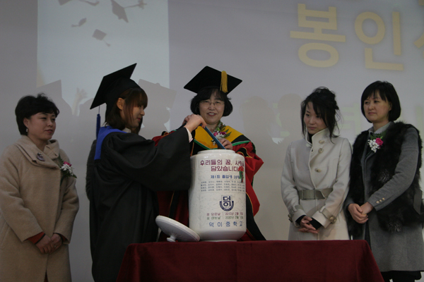 이날 졸업식에서는 졸업생들의 사회진출을 진심을 축하한다는 의미에서 박일화 교장이 286명 모두에게 졸업장을 전달하며 격려하는 시간을 마련했다. 박 교장은 회고사를 통해 “가슴속에 큰 포부를 지닌 사람이 되길 바라며 사회에 나가서도 훌륭한 인재가 되길 바란다”는 말을 전했다.