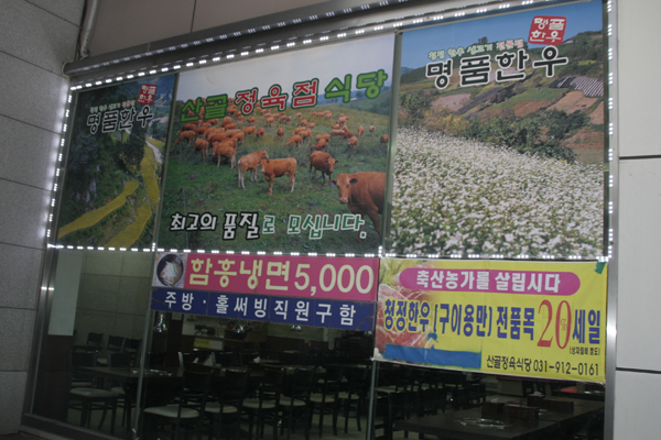 예로부터 동의보감에서는 한우의 다양한 효능을 전하고 있지만, 소비자들은 터무니없이 비싼 가격에 가까이 할 수 없고, 한우농가들은 소 값이 떨어져서 울상이다. 그런데 주엽동 태영프라자 본관 1층에 자리 잡은 청정한우 생고기 전문점인 ‘산골정육점 식당(대표 이미숙)’에서 명품 한우 소고기 구이용(등심, 채끝, 특수부위)을 20%할인 행사를 하고 있다.