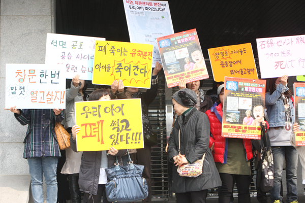 28일 고양시청 앞에서 양일초등학교 환경문제 해결촉구를 위한 학부모들의 집회가 열렸다.