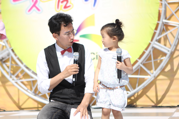 잠시 후 3시부터는 중앙무대에서 어린이날을 맞이해 ‘고양 어린이 웃음축제’가 진행됐다. 사전 축하공연으로 여성의장대 산울림의 공연과 신일중학교 악단의 연주가 이어졌으며 이어 즉석에서 아이들을 불러 동요부르기 대회를 열었다. 가장 최연소로 참가한 주하영(4세)양은 ‘개굴개굴’동요를 불러 참석자들에게 큰 박수를 받기도 했다.