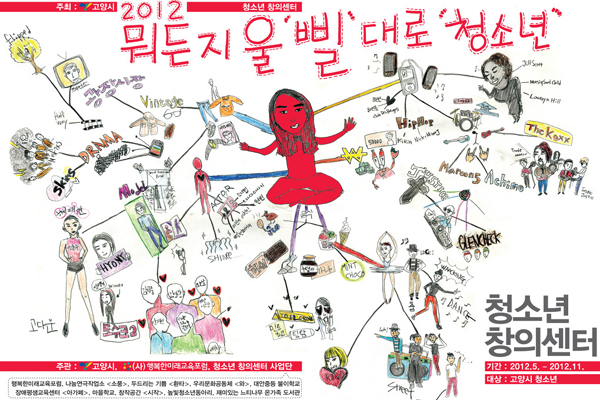탈학교 학생들에게 건강한 자기정체성 확립과 미래 설계에 도움을 주기위해 작년부터 시행된 청소년 창의센터사업. 현재 고양시 11개 문화 예술 교육관련 단체들이 함께 하는 청소년 창의센터 사업단에서는 작년의 성과를 발판으로 올해도 ‘2012 뭐든지 울 삘(feel)대로 청소년’이라는 제목으로 5월부터 11월까지 사업을 시작한다.