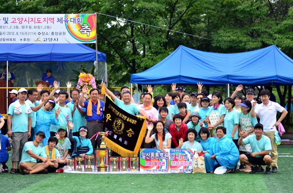 고양시 지도체육회(회장 이규열)는 15일, 충장근린체육공원에서 능곡동, 행주동, 화정1·2동, 행신1·2·3동 등 7개 동이 참석한 가운데, ‘제67회 광복절 기념 지도지역 체육대회’를 성황리에 진행했다. 이 날 체육대회에 참가한 선수들은 오전부터 계속된 많은 비에도 아랑곳하지 않고 축구, 족구 등 총 10개 종목에서 그 동안 갈고 닦은 실력을 마음껏 발휘했다. 최성 시장, 심상정·김태원 국회의원을 비롯한 지역의 주요인사들도 폭우가 내리는 와중에 체육대회를 축하하기위해 자리에 참석했다.